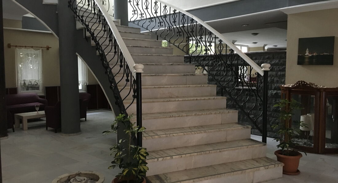 Что есть в отеле: конечно же большая красивейшая мраморная лестница это фишка отеля. в лобби есть Wi-Fi, несколько диванчиков. Столовая на 1 этаже - столики как внутри здания, так и снаружи в тени из зеленой изгороди. Со второго этажа проход к бассейну. Сам бассейн небольшой, есть водная горка (в средине мая еще не работала, думаю, её необходимо еще доработать). Около бассейна лежаки, бар, где с 4 до 5 можно покушать немного, а также место для настольных игр под навесом, детские качели. Есть также турецкие бани хамам - в наш отдых был включено бесплатное посещение сауны (хорошо, тепло и удобно).