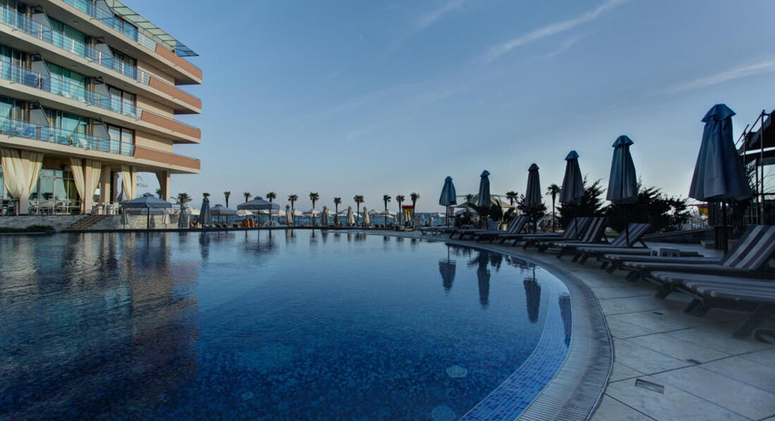 Готель складається з одного 5-поверхового будинку. Всього 244 номерів, всі з видом на море: