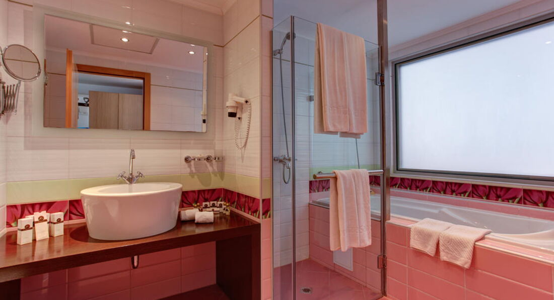 Junior Sea/Pool View – вид у бік моря чи басейну; одне приміщення, розділене на зону спальні та зону вітальні напівстіною, двоспальне ліжко та м'які меблі, дод. місце – розкладне ліжко, макс. 3 дор., 80 м2;