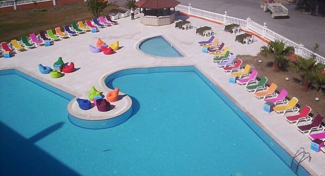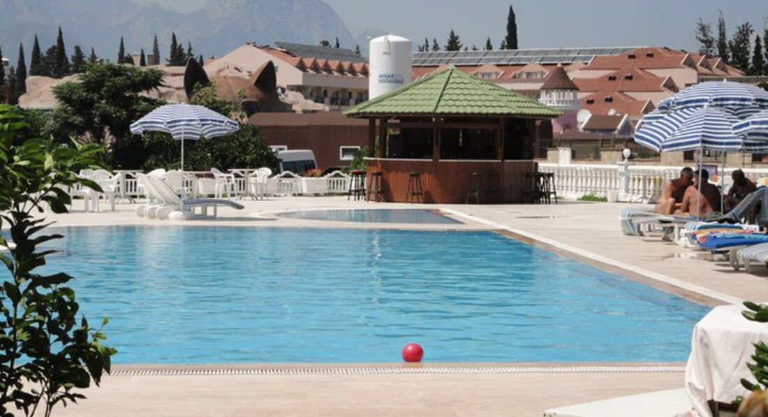 Я буду объективна, т.к. отдыхала ранее в Египте, Израиле, Тунисе, Праге и представление об отдыхе в другой странее имею. Отелю ставлю 3*. Территория отеля не большая и не очень облагорожена, 2 корпуса, мы жили в более новом: номер совдеповский, горячая вода была 2 дня из 7, в остальное время шла холодная. В комнате протек потолок, высох, но побелка "шкурой" нависала над кроватью. На ресепшен после 9 никогда никого не было, двери открыты и мог пройти с променада любой посторонний, это настораживает. Уборка была 2 раза, они просто застилали кровать и уходили с $. Мусор никто не выносил, туал.бумагу и принадлежности типа мыла, геля, шампуня никто ни разу не дал. Постельное поменяли 1 раз за 7 дней!!! Персонал в отеле очень грубый, если что-то просишь они либо делают вид, что не понимают, либо делают и ворчат по турецки (не понятно, может они тебя посылают?). Менеджер отеля Алехандро редкий грубиян, он мило улыбается и общается, затем протягивает руки, если отказала, он как и все работники наорал на своем языке и последующие дни не здоровался, это не профессионально, ведь он на работе! Из еды на завтрак колбаса, сыр, яйца и хлеб, большего не ждите! На обед 2 вида гарнира, овощи свежие и на гриле, зелень, печень, 1 раз курица (не всем досталась), моченые огруцы, арбуз, апельсины, ужасные сладости (очень жирный масляный торт, несъедобное желе), напитки типа юпи (чаще всего пусты эти аппараты) и кофе,чай. На баре пиво, вино невозможно пить, и у работников это надо выпросить, наливают неохотно по пол стакана. Анимации вечером нет, зазывают в клуб Аура, приводят толпой и не разрешают "отбиваться от стаи". Пляж 1700м от отлея, трансфер 3 раза в день, он платный!!!!!! и бар на нем тоже платный!!!! Мы ходили на общественный, 3 минуты пешком, он от клуба Аура, вход 2$, шезлонг и зонт выбираешь любой, хороший работник Октай смотрит за чистотой и порядком. Вцелом отдых испорчен, отель просто ужасен, никогда туда не вернусь, общее впечатление о Турции испорчено, понравилось только море.