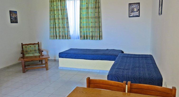 Типи номерів: • One-Bdrm-Apartment (35 м2, макс. 4 чол., 2 кімнати: спальня та вітальня, розділені дверима, обладнаний кухонний куточок, балкон) • Studio (25 м2, одна спальня та ванна, обладнаний кухонний куточок, балкон)У номері: • душ • кондиціонер (15/06-15/09 безкоштовно) • супутникове ТВ • прямий телефон • міні-холодильник (безкоштовно) • електроплита • софа • електрочайник